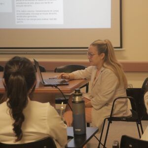 “Hoy nos tocó dar una clase sobre la dermatitis atópica, que es una enfermedad inflamatoria crónica de la piel, que produce síntomas como prurito y resequedad de la piel”, explicó la Dra. Fonseca.