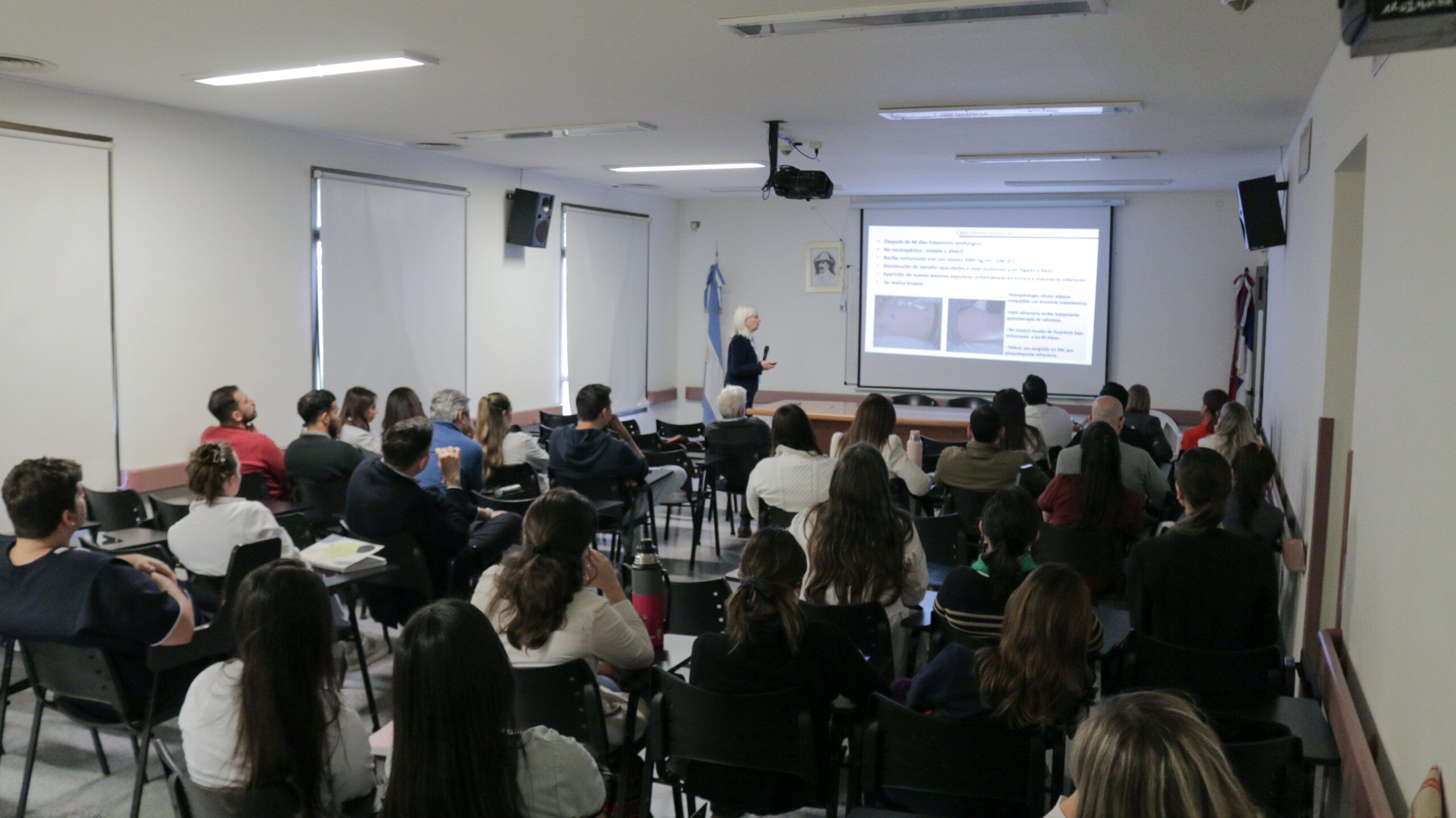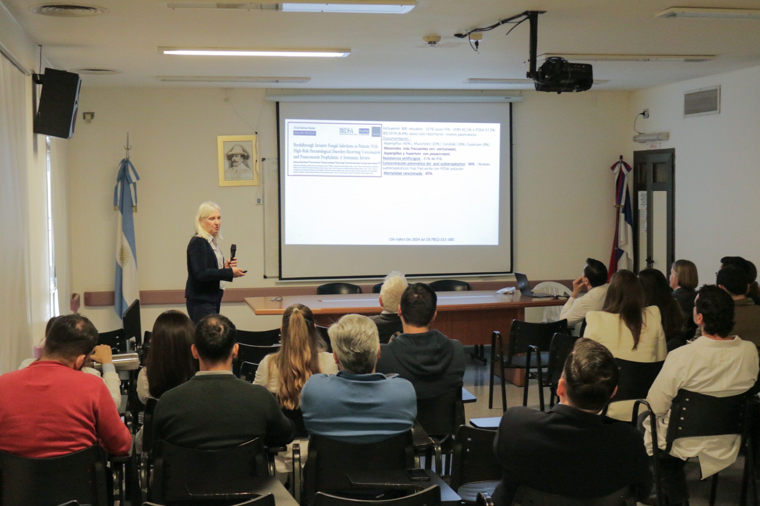 La Dra. Rosana Jordán destacó la calidad del auditorio y el interés activo de los asistentes, con numerosas preguntas y una conversación enriquecedora sobre el manejo de infecciones fúngicas invasivas en pacientes vulnerables.